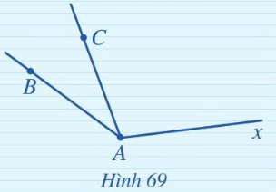 Hãy đọc và viết tên các góc đỉnh A trong Hình 69 và cho biết các cạnh của chúng.