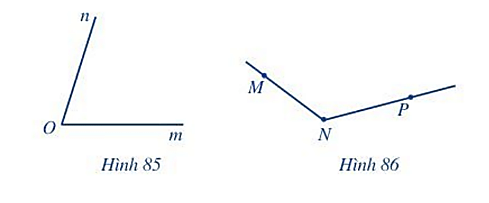 – Hình 85: Góc \(\widehat {mOn}\) có đỉnh O, cạnh Om và On.