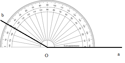 Đặt thước đo góc sao cho tâm của thước trùng với đỉnh O của góc. Vạch 0 của thước nằm trên cạnh Oa.