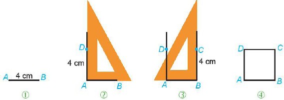 (1) Vẽ hình vuông ABCD có cạnh 4 cm theo hướng dẫn sau: