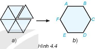 (1) Cắt sáu hình tam giác đều giống nhau và ghép lại như Hình 4.4a để được hình lục giác đều như Hình 4.4b.
