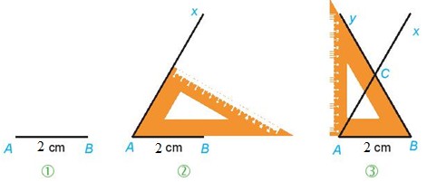 Bước 3. Vẽ góc ABy bằng . Ta thấy Ax và By cắt nhau tại C, ta được tam giác đều ABC.