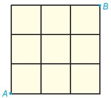 Có nhiều cách để con kiến bò từ A đến B theo đường chéo của hình vuông.