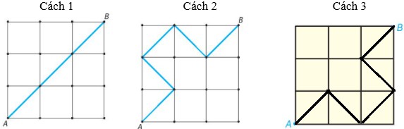 Quan sát hình dưới và chỉ ra ít nhất hai cách, để một con kiến bò từ A đến B theo đường chéo của các hình vuông nhỏ?