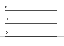 Vẽ ba đường thẳng m, n, p: Dùng bút và thước thẳng vạch trên trang giấy theo cạnh của thước (ba lần) ta được ba đường thẳng m, n, p tương ứng. Có thể có các trường hợp sau đây xảy ra: