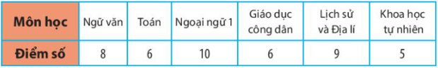 Vẽ biểu đồ cột biểu diễn điểm các môn thi tập trung cuối học kì của bạn Lan được cho trong bảng sau: