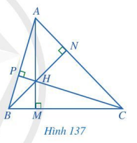 Quan sát ba đường cao AM, BN, CP của tam giác ABC (Hình 137), cho biết ba đường cao đó có cùng đi qua một điểm hay không.
