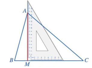Cho tam giác ABC (Hình 133). Bằng cách sử dụng ê ke, vẽ hình chiếu M của điểm A trên đường thẳng BC.