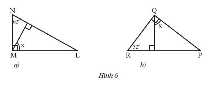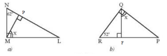\(⇒ \widehat x = {90^o} – \widehat L = {90^o} – {28^o} = {62^o}\)