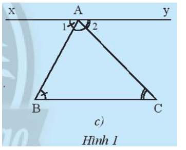 Từ (1) và (2) suy ra: \(\widehat B + \widehat {BAC} + \widehat C\) = \(\widehat {A_1} + \widehat {BAC} + \widehat {A_2} = \widehat {xAy}= 180^o\)