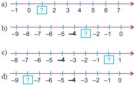 Các số -4, -7, -8, -9 là các số nguyên âm nằm bên trái điểm 0 và cách điểm 0 lần lượt là 4, 7, 8, 9 đơn vị.