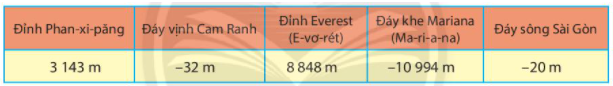 Hãy nói độ cao hoặc độ sâu của các địa danh sau: