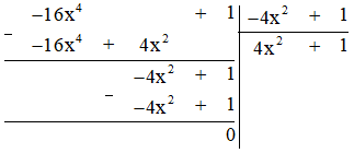 Vậy $(-16x^4 + 1) : (-4x^2 + 1) = 4x^2 + 1$.