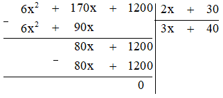 Một công ty sau khi tăng giá 30 nghìn đồng mỗi sản phẩm so với giá ban đầu là 2x (nghìn đồng) thì có doanh thu là \(6{x^2} + 170x + 1200\) (nghìn đồng). Tính số sản phẩm mà công ty đó đã bán được theo x.