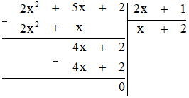 Vậy $(2x^2 + 5x + 2) : (2x + 1) = x + 2$.