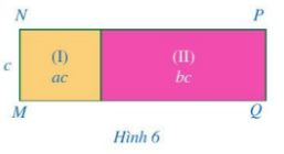 Ở Hình 6, diện tích các hình chữ nhật (I), (II) lần lượt là \(A = ac,B = bc\). Biết \(MN = c\).