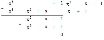 Vậy \(({x^3} + 1):({x^2} – x + 1) = x + 1\).