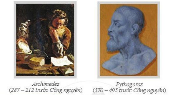 – Tương tự, quan sát bức ảnh thứ hai, ta thấy nhà bác học Pythagoras sinh năm 570 trước Công nguyên và mất năm 495 trước Công nguyên, có nghĩa là nhà bác học này sinh năm – 570 và mất năm – 495.