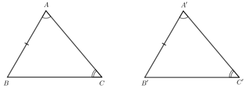 \(\widehat A = \widehat {A’}\), AB = A’B’, \(\widehat B = \widehat {B’}\).