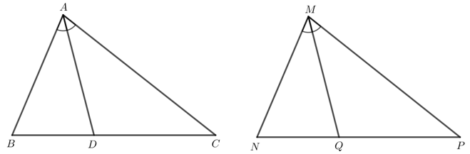 Cho \(\Delta ABC = \Delta MNP\). Tia phân giác của góc BAC và NMP lần lượt cắt các cạnh BC và NP tại D, Q. Chứng minh AD = MQ.