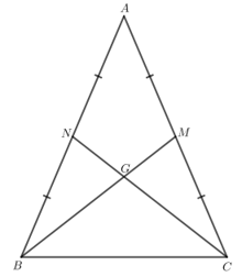 \(GB = \dfrac{2}{3}BM; GC = \dfrac{2}{3}CN\).