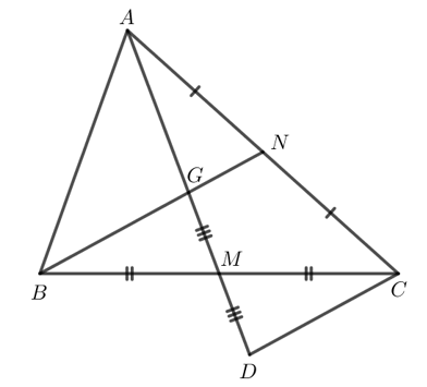 Mà G là trọng tâm tam giác ABC nên \(BG = 2GN\).