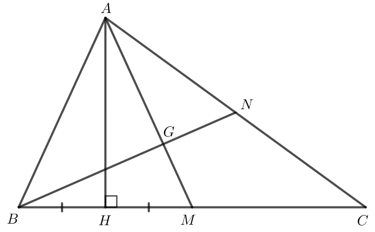 Cho tam giác ABC có hai đường trung tuyến AM và BN cắt nhau tại G. Gọi H là hình chiếu của A lên đường thẳng BC. Giả sử H là trung điểm của đoạn thẳng BM. Chứng minh: