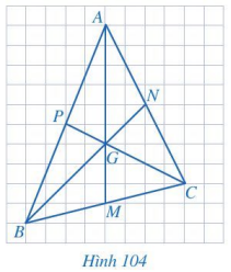 Quan sát các đường trung tuyến AM, BN, CP của tam giác ABC trong Hình 104. Bằng cách đếm số ô vuông, tìm các tỉ số