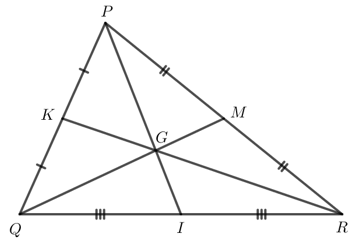 Cho tam giác PQR có hai đường trung tuyến QM và RK cắt nhau tại G. Gọi I là trung điểm của cạnh QR. Chứng minh rằng ba điểm P, G, I thẳng hàng.
