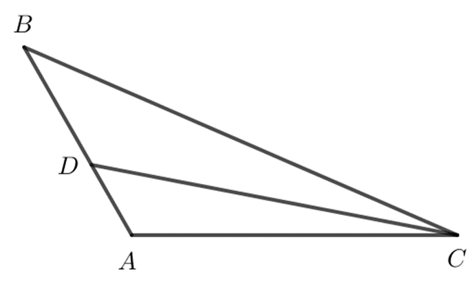 Trong tam giác $ABD$, góc $DCA$ là góc tù nên là góc lớn nhất. Cạnh $DA$ đối diện với góc lớn nhất nên là cạnh lớn nhất.