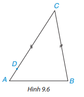 Trong Hình 9.6 có hai đoạn thẳng BC và DC bằng nhau, D nằm giữa A và C. Hỏi kết luận nào trong các kết luận sau là đúng? Tại sao?