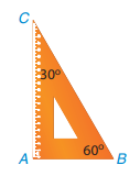 Quan sát ê ke có góc \(60^\circ \) (H.9.2). Kí hiệu đỉnh góc vuông là A, đỉnh góc \(60^\circ \) là B và đỉnh góc \(30^\circ \) là C.