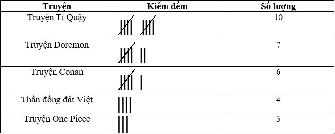 Điều tra về các loại truyện ưa thích của các bạn trong lớp ta được bảng số liệu sau: