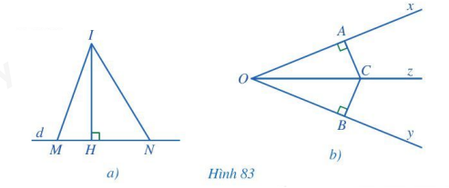 Chỉ ra các đường vuông góc, các đường xiên kẻ từ điểm I trong Hình 83a và từ điểm C trong Hình 83b.