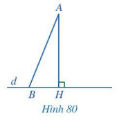Giả sử AH, AB lần lượt là đường vuông góc và đường xiên kẻ từ điểm A đến đường thẳng d (Hình 80). Trong tam giác AHB, hãy so sánh: