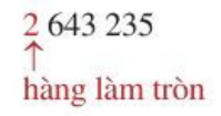 – Do chữ số hàng trăm là 2 (nhỏ hơn 5) nên trong số 2 643 235 ta giữ nguyên chữ số 3 ở hàng nghìn (hàng làm tròn) rồi thay lần lượt các chữ số đứng bên phải hàng làm tròn bởi chữ số 0: $2\, 643\, 235 → 2\, 643\, 235 → 2\, 643\, 000$.