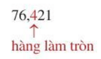 – Do chữ số hàng đơn vị là 6 (lớn hơn 5) nên trong số 76,421 ta cộng thêm 1 vào chữ số 7 ở hàng chục (hàng làm tròn): $76,421 → 86,421$