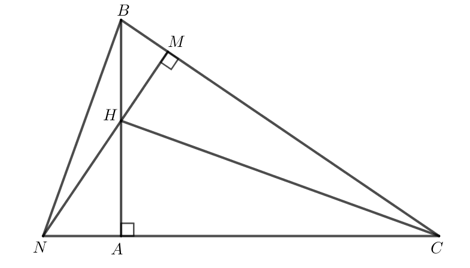 Mà $BA$ và $NM$ cắt nhau tại $H$ nên $H$ là trực tâm của tam giác $BNC$.