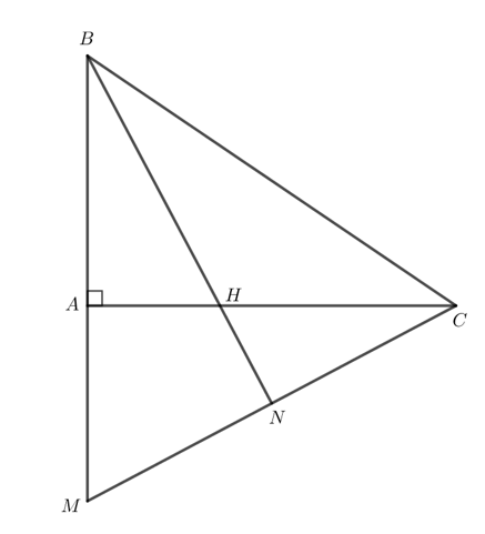 Mà $CA$ và $BN$ cắt nhau tại $H$ nên $H$ là trực tâm của tam giác $BMC$.