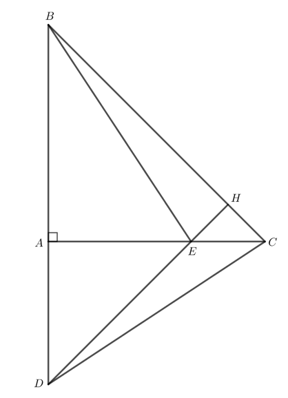 Mà $AC$ cắt $DE$ tại $E$ nên $E$ là trực tâm tam giác $BCD$ (Do $AC$ cũng là đường cao của tam giác $BCD$)