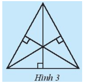 Vẽ một tam giác rồi dùng êke vẽ ba đường cao của tam giác ấy (Hình 3). Em hãy quan sát và cho biết các đường cao vừa vẽ có cùng đi qua một điểm hay không.