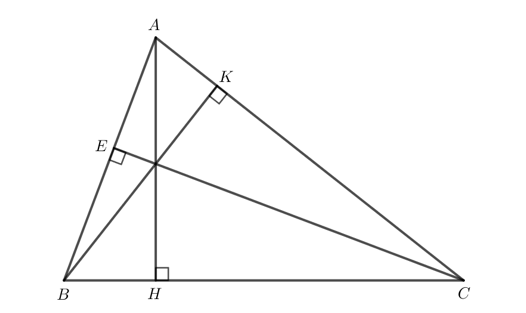 Vẽ ba đường cao AH, BK, CE của tam giác nhọn ABC.