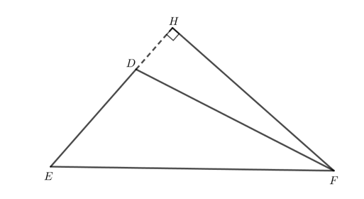 Vẽ đường cao xuất phát từ đỉnh F của tam giác tù DEF (Hình 2b).