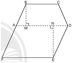 Một mảnh vườn có hình dạng như hình vẽ bên. Để tính diện tích mảnh vườn, người ta chia nó thành hình thang cân ABCD và hình bình hành ADEF có kích thước như sau: BC = 30 m; AD = 42 m, BM = 22 m, EN = 28 m. Hãy tính diện tích mảnh vườn này.