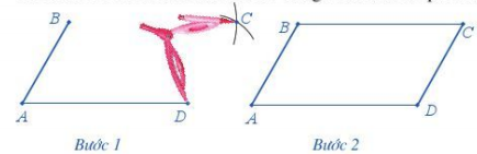 Ta có thể vẽ hình bình hành ABCD bằng thước và compa như sau: