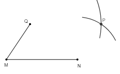 – Bước 1. Lấy Q làm tâm, dùng compa vẽ một phần đường tròn có bán kính MN. Lấy N làm tâm, dùng compa vẽ một phần đường tròn có bán kính MQ. Gọi P là giao điểm của hai phần đường tròn này.