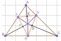 Gọi D là giao điểm của IC và MN; E là giao điểm của IA và PN; F là giao điểm của IB và PM.