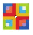 Trong Hình 70, các hình từ a) đến c), hình nào có tâm đối xứng? Nếu là hình có tâm đối xứng, hãy chỉ ra tâm đối xứng của hình đó (kể cả màu sắc)