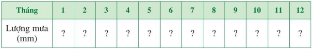 a) Lập bảng số liệu thống kê lượng mưa trung bình tháng ở Cần Thơ theo mẫu sau: