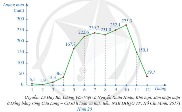 Biểu đồ đoạn thẳng ở Hình 20 biểu diễn lượng mưa trung bình tháng ở Cần Thơ.